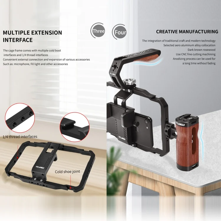 YELANGU LW101 Vlogging Live Broadcast Smartphone Video Rig Handles Stabilizer Kits
