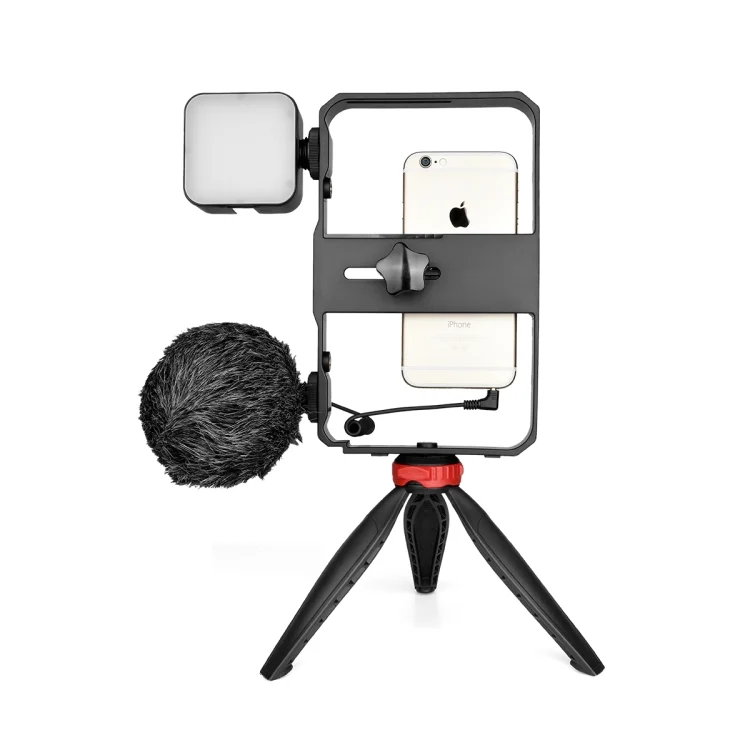 YELANGU PC204 YLG1801D Vlogging Live Broadcast LED Selfie Light Smartphone Video Rig Handle Stabilizer Bracket Kits with Microphone & Tripod