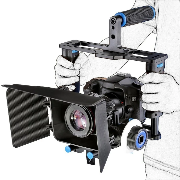 YELANGU YLG1103A-B Large Handle Video Camera Cage Stabilizer + Matte Box Kit for DSLR Camera / Video Camera