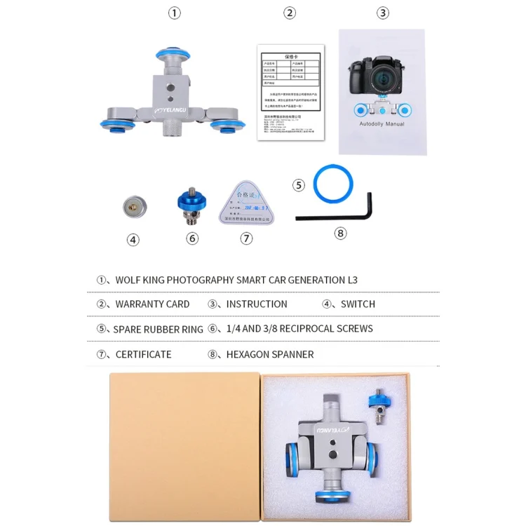 YELANGU L3 Camera Wheels Autodolly Electric Track Slider Car, Load: 6kg