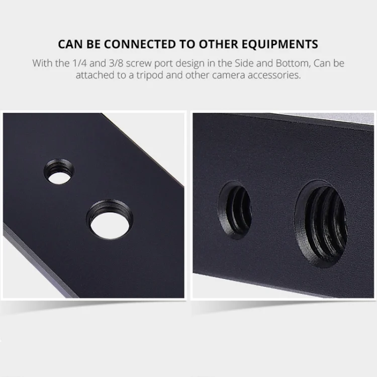 4. External devices connected: Sliders, Baseboard, Tripod. There are a lot of 1/4 and 3/8 standard screw, you can connect different devices with them to use.