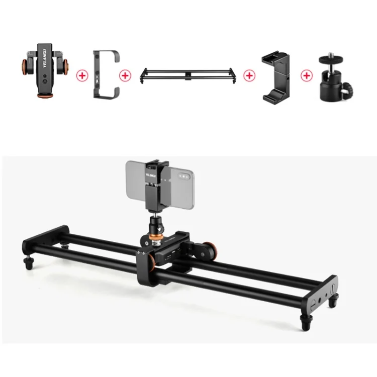 YELANGU L60E 60cm Slide Rail Track + L4 3-Wheel Video Dolly with PC142 Phone Clamp & Ballhead