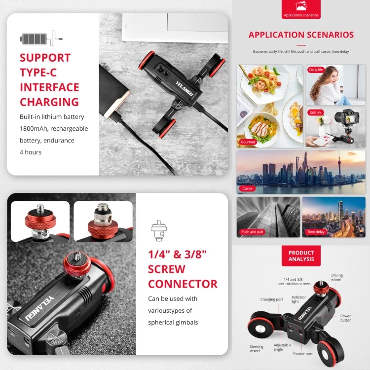 3. The product is equipped with an adapter screw, which can be adapted to autodolly and can be connected to other photography equipment .