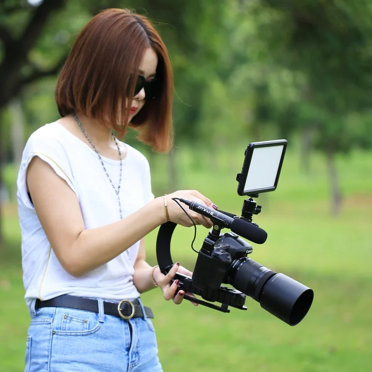 PULUZ U/C Shape 3-Head Cold Shoes Portable Handheld DV Bracket Stabilizer for All SLR Cameras and Home DV Camera
