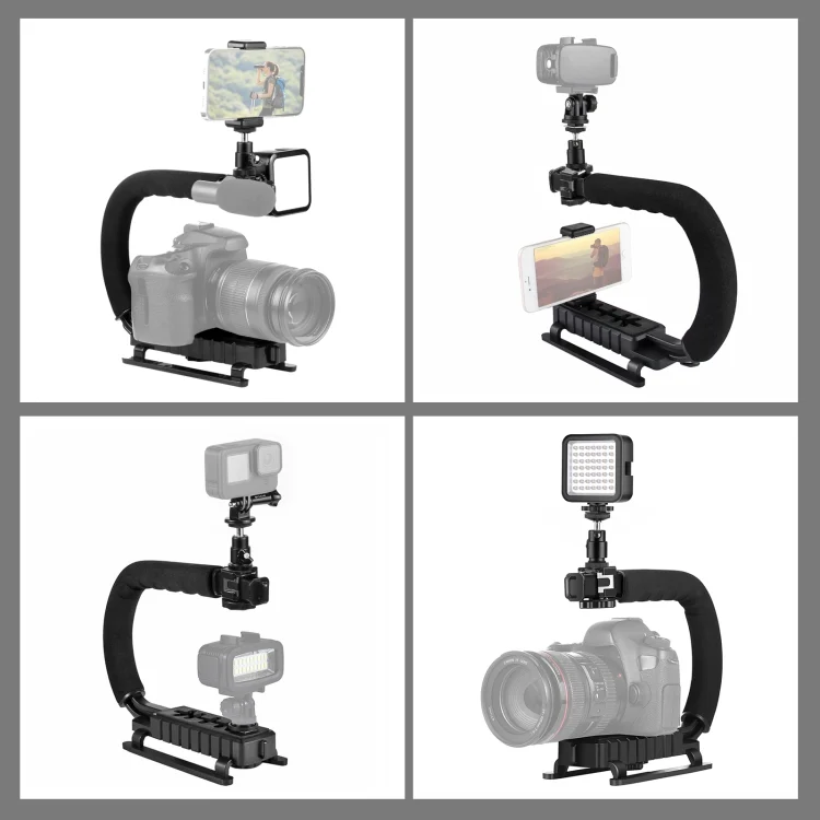 PULUZ U/C Shape Portable Handheld DV Bracket Stabilizer + LED Fill Light Kit with Cold Shoe Tripod Head for All SLR Cameras and Home DV Camera