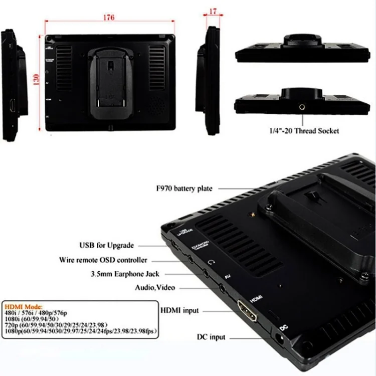 FEELWORLD FW-759 7 inch Slim Design 1280 x 800 Camera Field Monitor HDMI 1080P