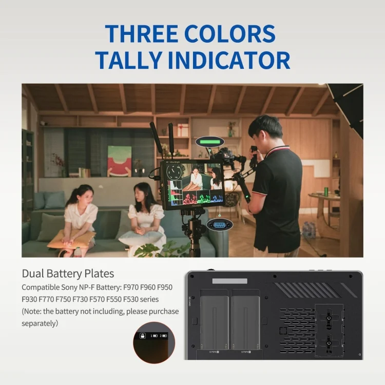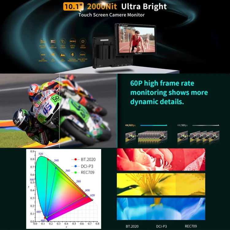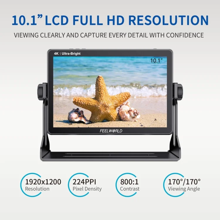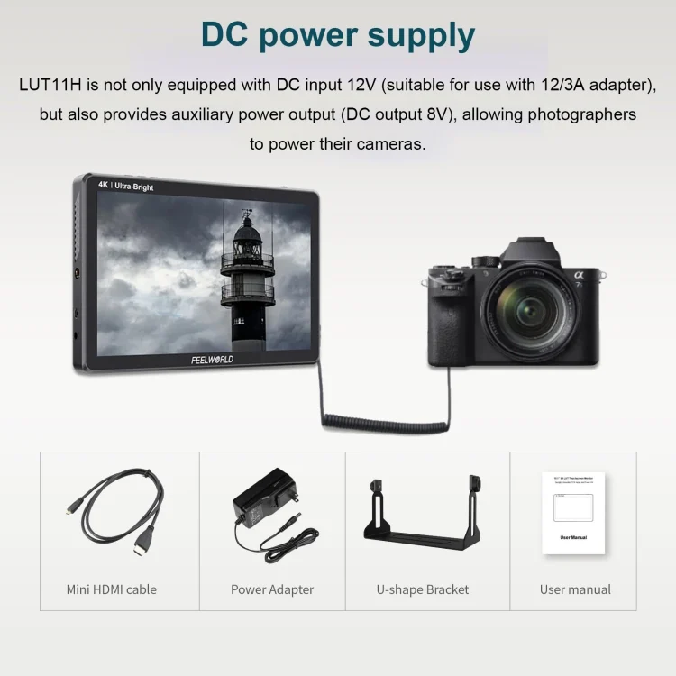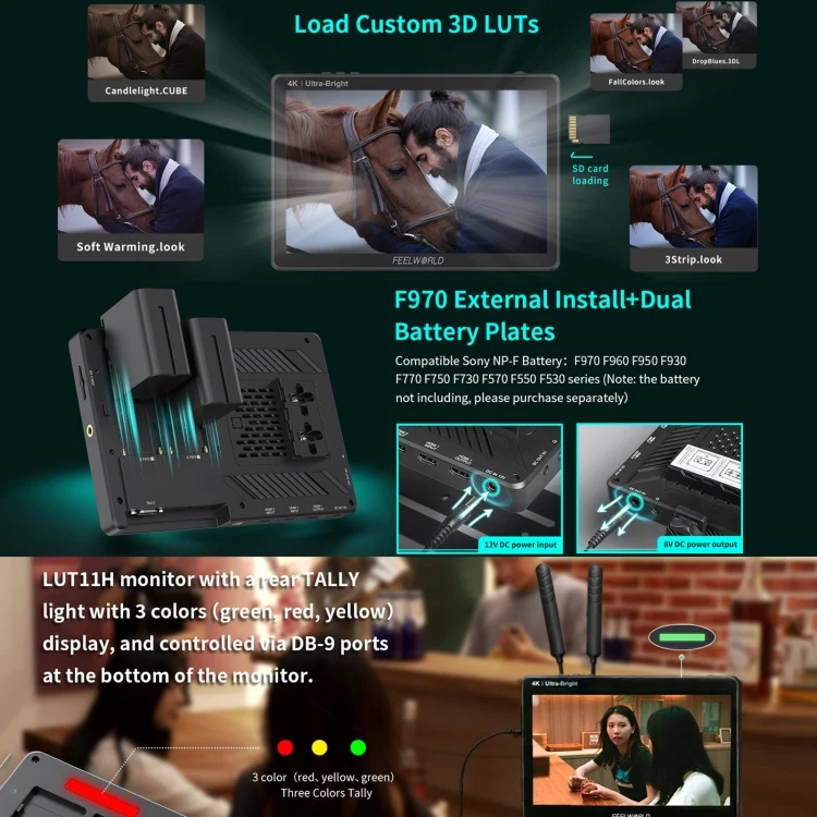 FEELWORLD LUT11H 10.1 Inch Ultra Bright 2000nit DSLR Camera Field Monitor Touch Screen 4K HDMI F970 External Power and Install Kit