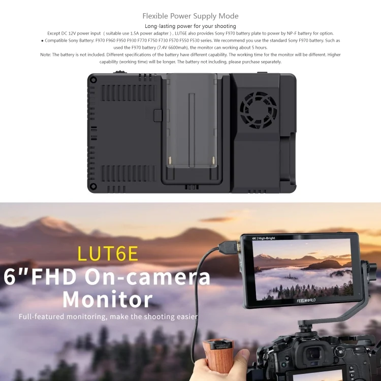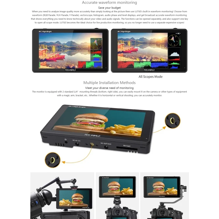 FEELWORLD LUT6E 6 inch 1600nits Touch Screen DSLR Camera Field Monitor Full HD1920x1080 IPS