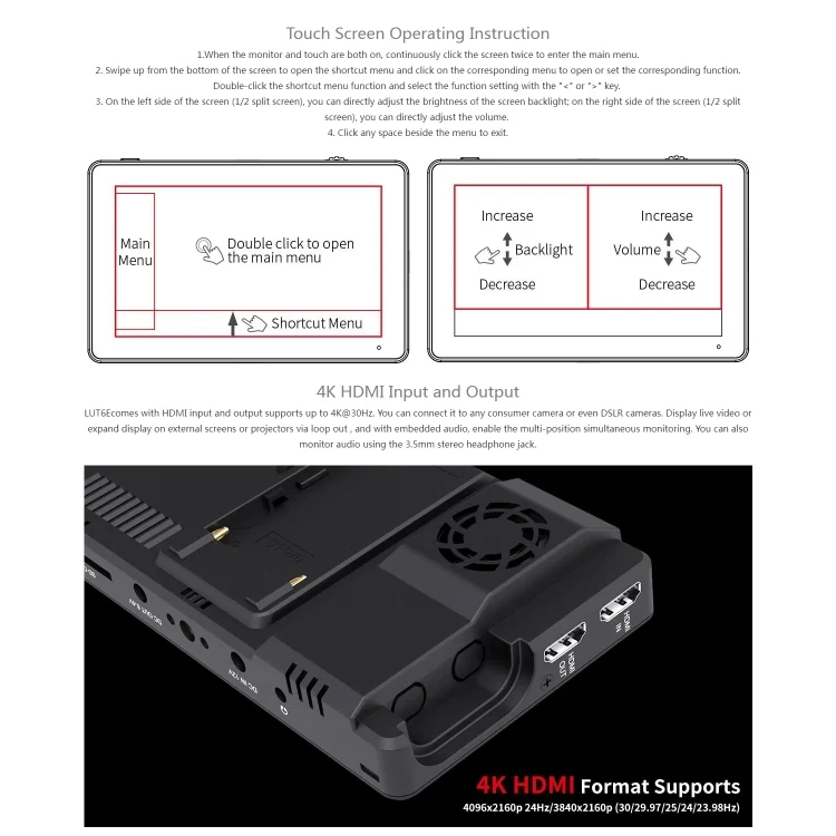 5.5 Inch Camera Studio Monitors 4K HDMI 3D LUT Director Monitor