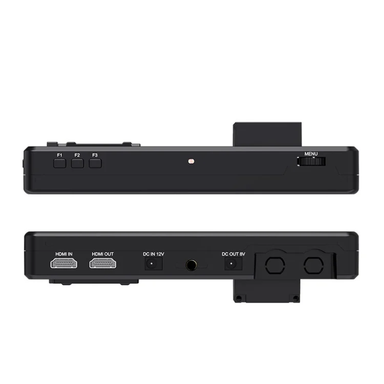 8. LUT7 PRO provides filmmakers with the advantages of a large built-in camera display without adding to the trouble of setting up the camera. The compact and lightweight design condenses high-end monitoring functions and can be connected to almost any camera. It has a large bright touch screen on the front, a signal interface at the bottom, and an SD card slot on the side. There is also an F970 battery buckle and an installation/power supply kit on the back of the monitor, which can be externally attached with a Sony F970 battery buckle Board equipment and provide power for it, such as wireless video transmission, LED lights, etc. There are standard 1/4 inch mounting points on the bottom and left and right sides, which can be used to mount to cameras and other equipment. This design detail makes LUT7 PRO easy to connect to the camera and easy to share with team members or customers on site.