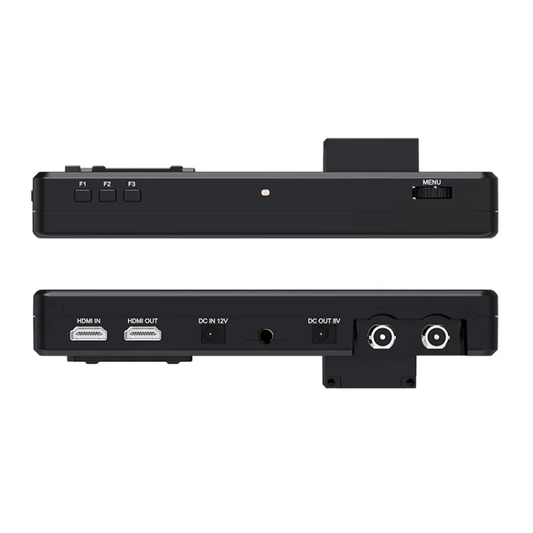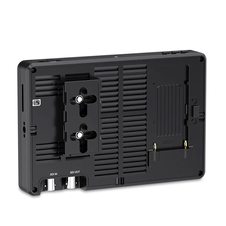 25. A Sony F970 external power supply kit design has been added to the back of the monitor. You can install wireless video transmission, photography lights, conversion boxes, or other devices that can be powered by F970 batteries directly on it, and you can use the monitor for it powered by. This innovative external power supply design reduces the photographers need for external wireless video transmission, photography lights and other equipment to supply power, which greatly saves the space occupied by the equipment and reduces the weight of the photography equipment. The kit has two cross grooves, you can adjust the position of the external device by loosening the screws. When you dont need the kit, you can directly loosen the screws and remove the kit.
