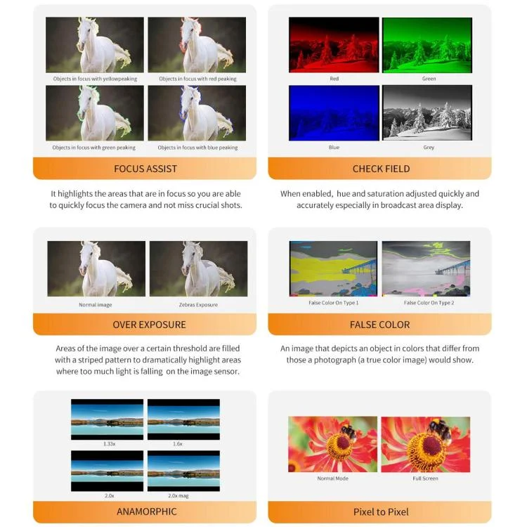 7. Focus Assist(Red, Green, Blue three focus colors optional; 1~10 focus level adjustable)