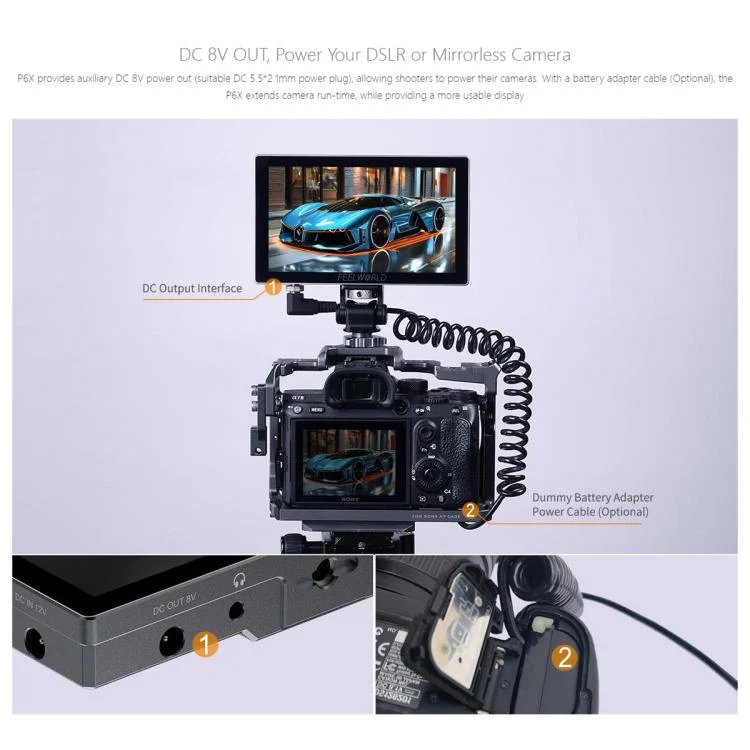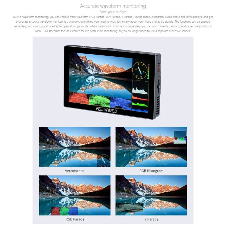 FEELWORLD P6X 5.5 inch Aluminium DSLR Camera Field Monitor Touch Screen 4K HDMI High Brightness 1000nit Monitor