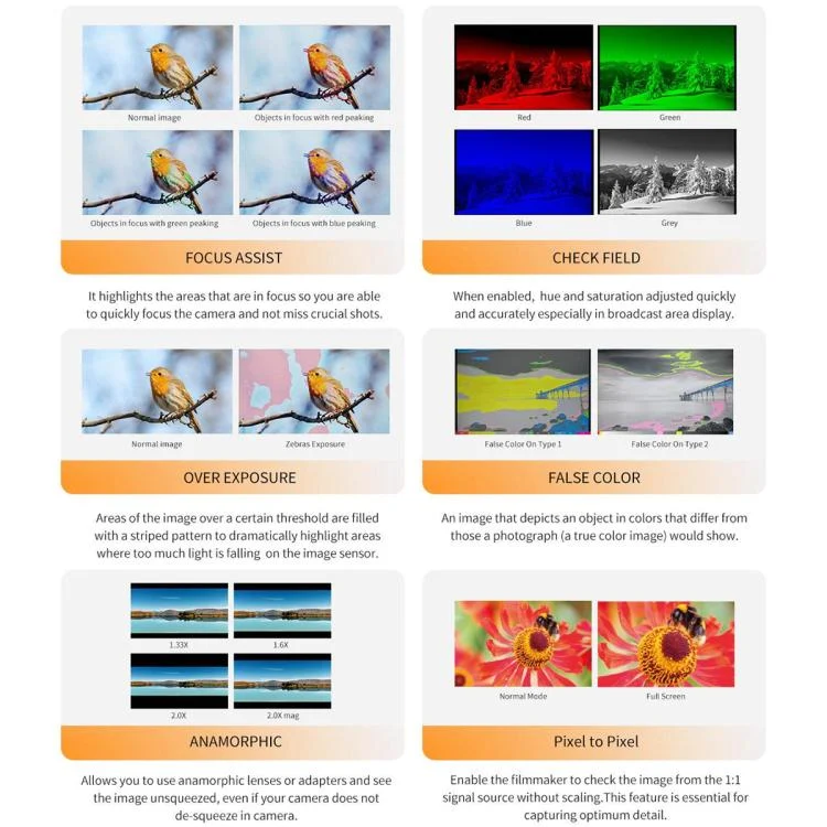 7. Focus Assist(Red, Green, Blue three focus colors optional; 1~10 focus level adjustable)
