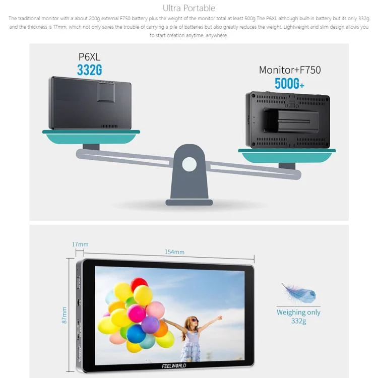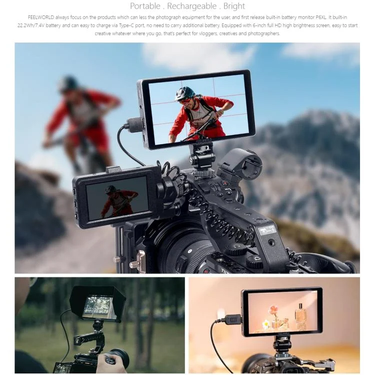 FEELWORLD P6XL 6.0 inch Aluminium Built-in Battery DSLR Camera Field Monitor Touch Screen 4K HDMI High Brightness 1200nit Monitor