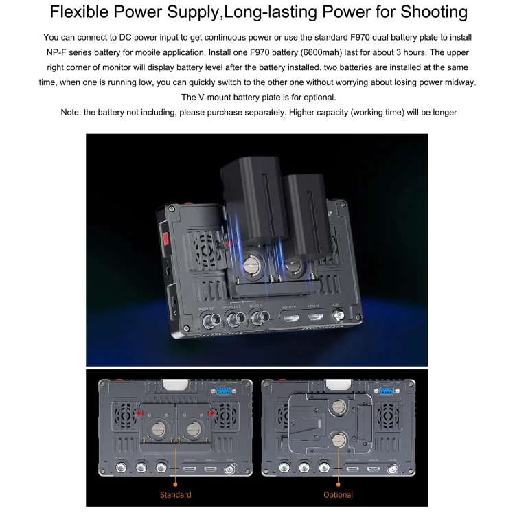 11. Standard accessory F970 dual battery??plates,long-lasting power or outdoor filming