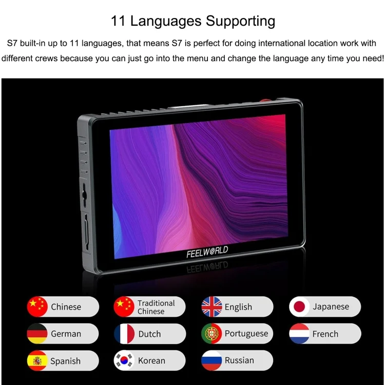 FEELWORLD S7 7-inch 12G-SDI HDMI2.0 Camera Field Monitor High Brightness1600nit Touchscreen
