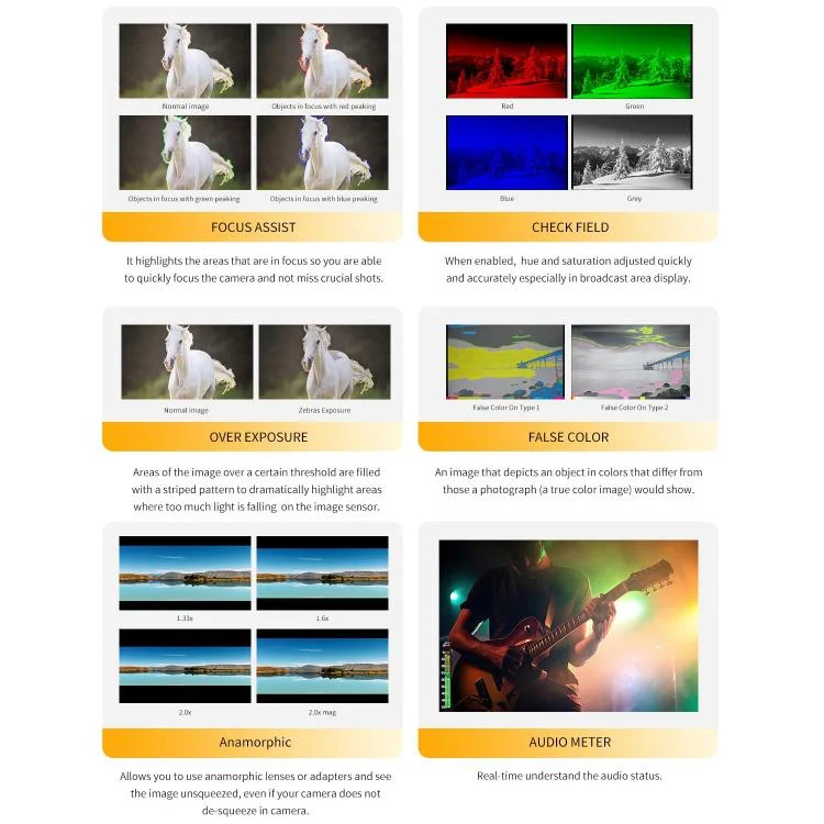 4. Focus Assist(Red, Green, Blue), you can adjust the peaking level after turning on 1-10