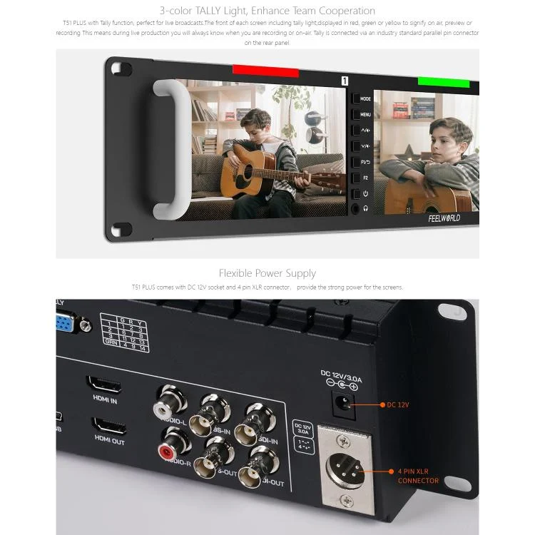 FEELWORLD T51 PLUS Triple 5.5 inch 2RU Rackmount Monitor Full HD 3G-SDI 4KHDMI AV Monitor