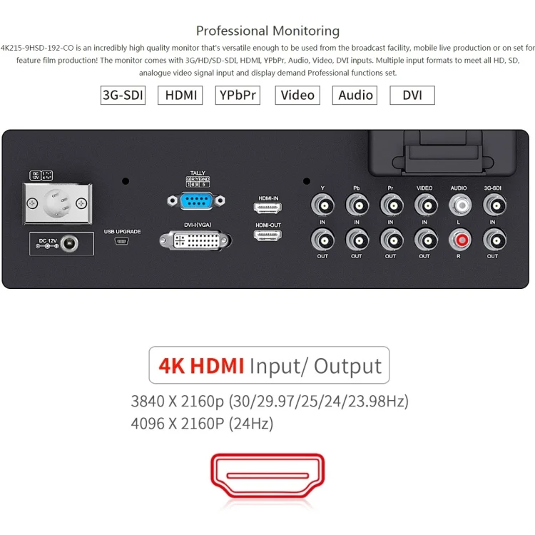 6. Equipped with 3G-SDI, HDMI, YPbPr, Video, AudioL/R, DVI interfaces, a variety of input methods to meet your needs for various professional display solutions