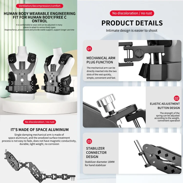 YELANGU B400 Three-axis Shock-absorbing Arm Vest Stabilizing Camera Support System Easy Rig