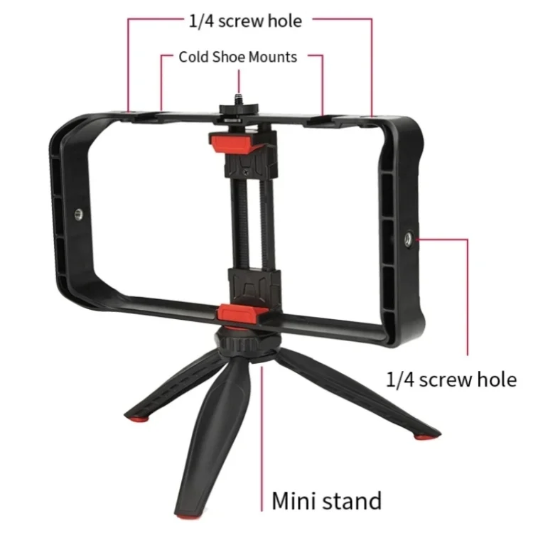 4.1/4 Universal Screw Hole: The phone cage can be mounted on a tripod stand or extension rod via the universal 1/4 screw hole