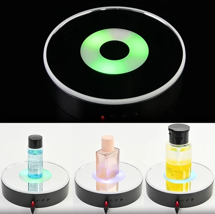1. Use this rotating stand to display your favorite works. It features gradient colored lights that make the items more beautiful and charming.