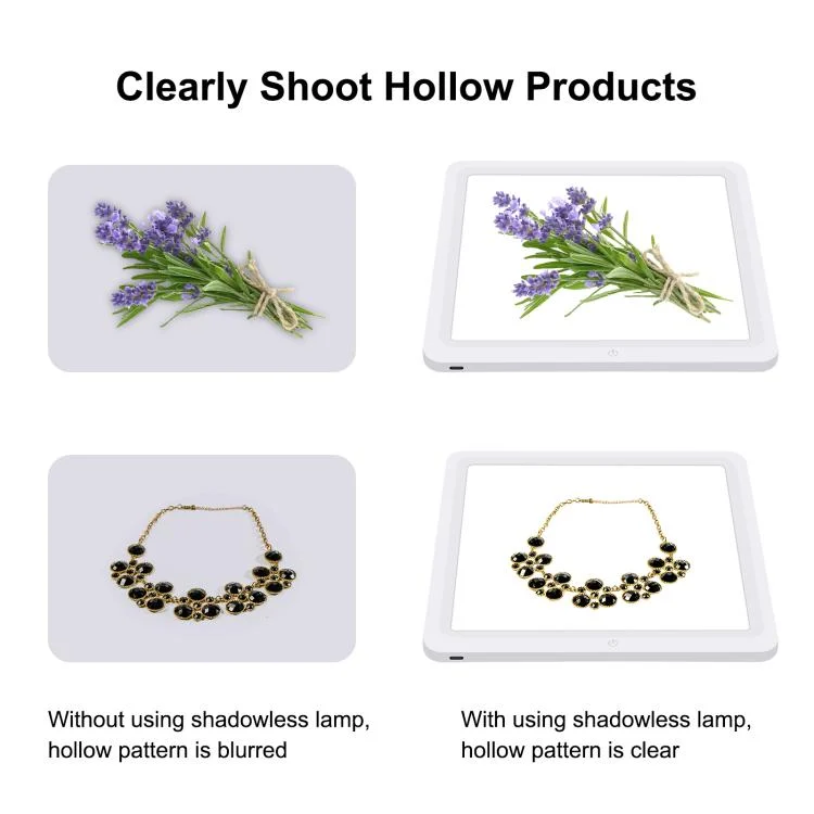 1. This shadowless light for photo booth light box eliminate photographing shadow problems, sharpen outline and edge of products and greatly reduce time consuming photo editing.