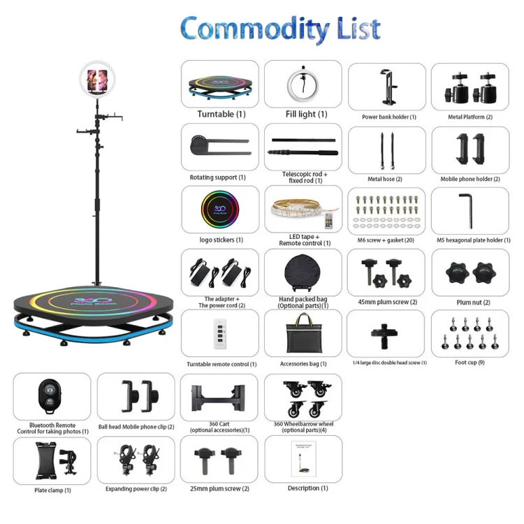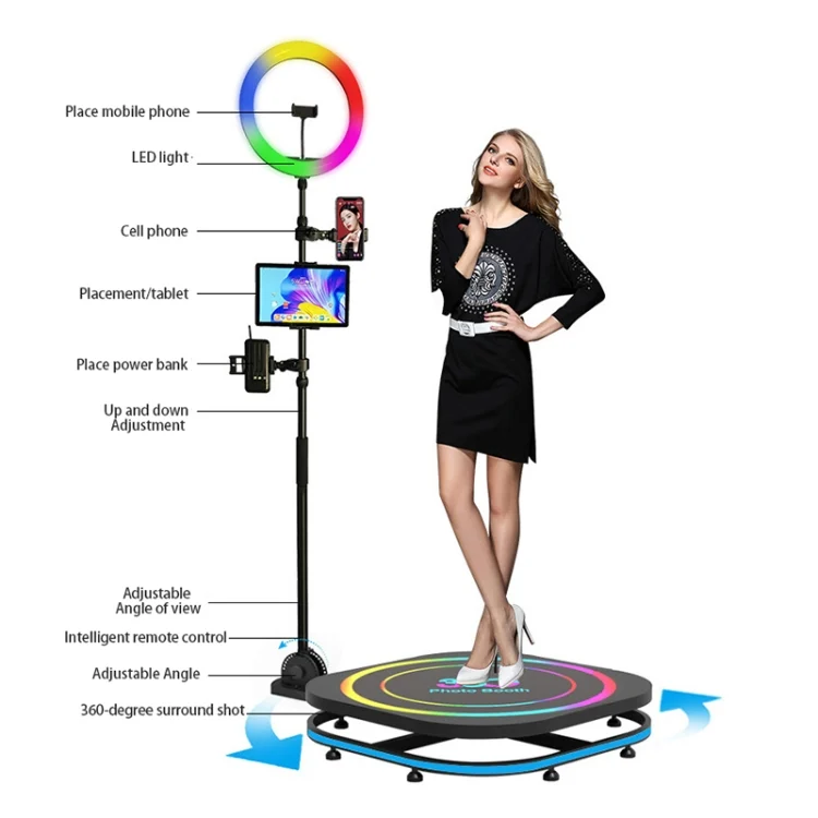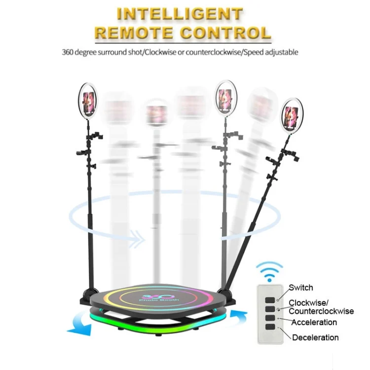 RGB Fill Light Photo Booth Turning Led Camera Photo Spin Stand With Flight Case