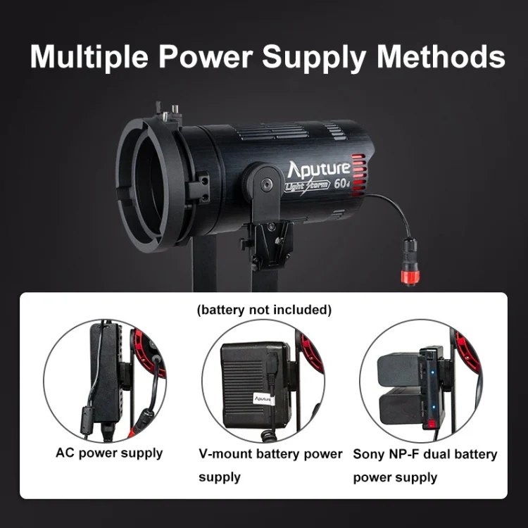 9. The LS60 series has an external 100-240VAC power adapter, which can be directly plugged in and used worldwide through the mains. At the same time, the LS60 series supports two types of battery power supply: V-mount and Sony NP-F, with multiple power supply solutions to complete lighting anytime and anywhere.