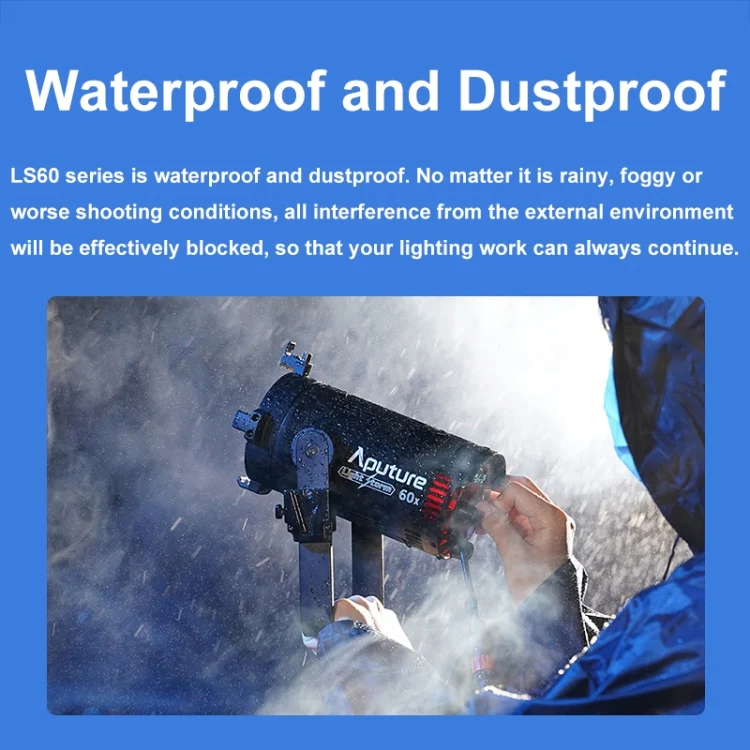 1. The LS60 series is waterproof and dustproof. No matter it is rainy, foggy or in worse shooting conditions, all interference from the external environment will be effectively blocked, allowing your lighting work to continue.