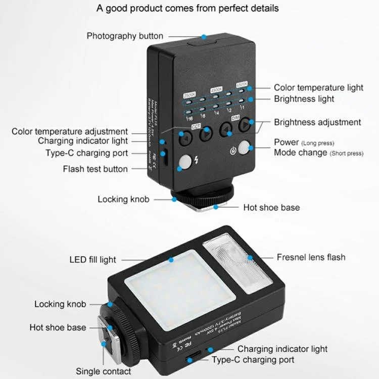 5. Efficient Power Management: Operating at 4.5W, this flash provides a reliable and energy-efficient lighting solution for your photography needs, balancing performance with power consumption.