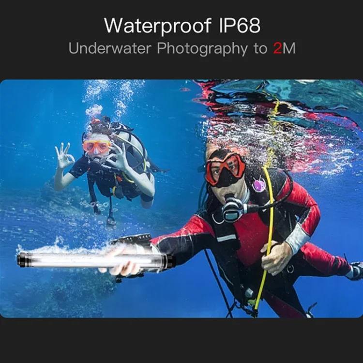 2. Waterproof rating of IP68: The professional waterproof IP68 rating makes It can work underwater 2 meters and suit for underwater photography and shooting