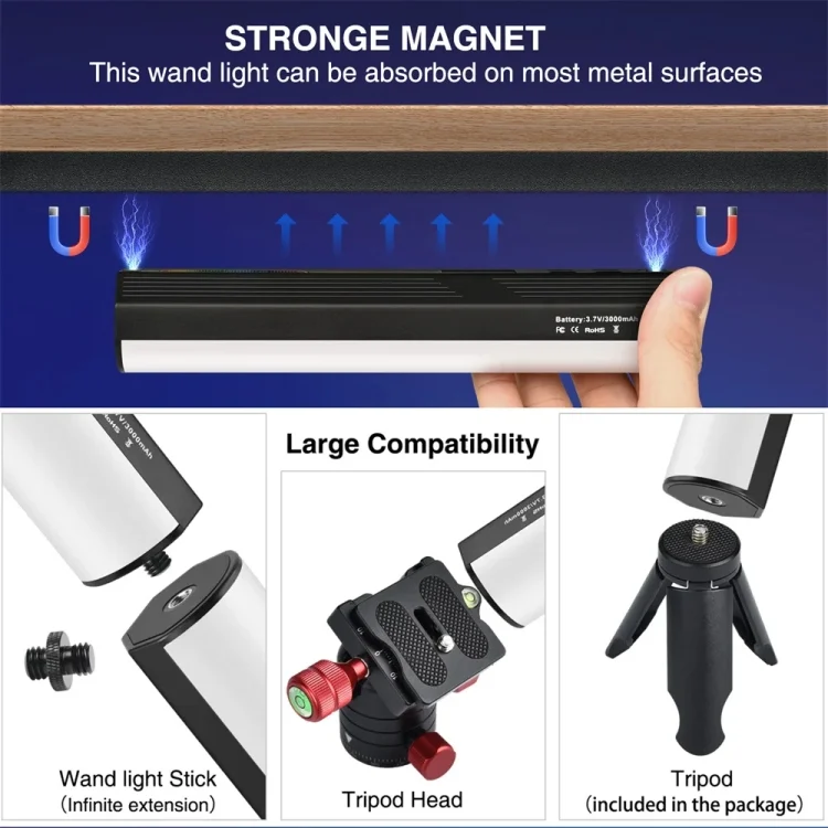 2. Built-in magnet, magnetic adsorption, free shooting lighting