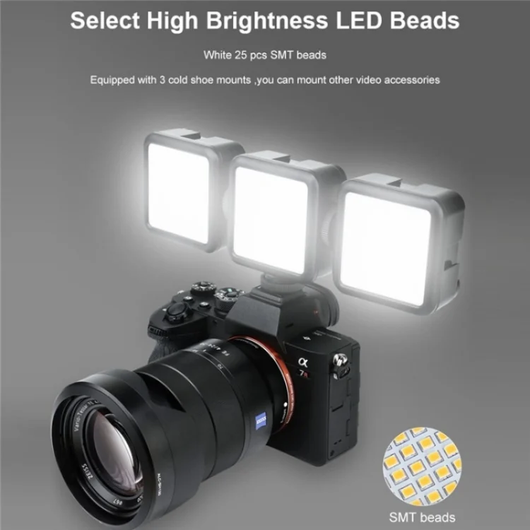 1. LED video light adopts 25pcs SMT Index 90+ beads and the Max Brightness up to 800Lm (5600K+200K)