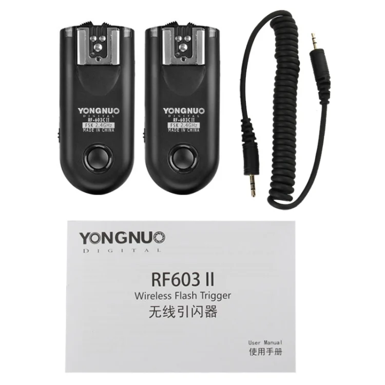 2 PCS YONGNUO RF603N II FSK 2.4GHz Wireless Flash Trigger with N1 Shutter Connecting Cable