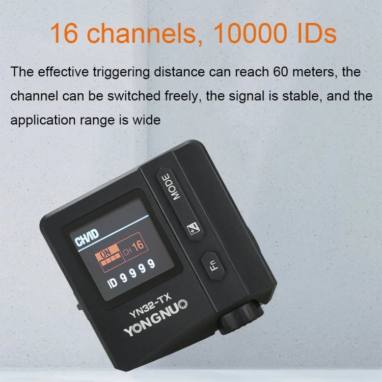 4. 2.4GHz wireless transmission, can remotely trigger YONGNUO flash with built-in RF radio system within 60 meters