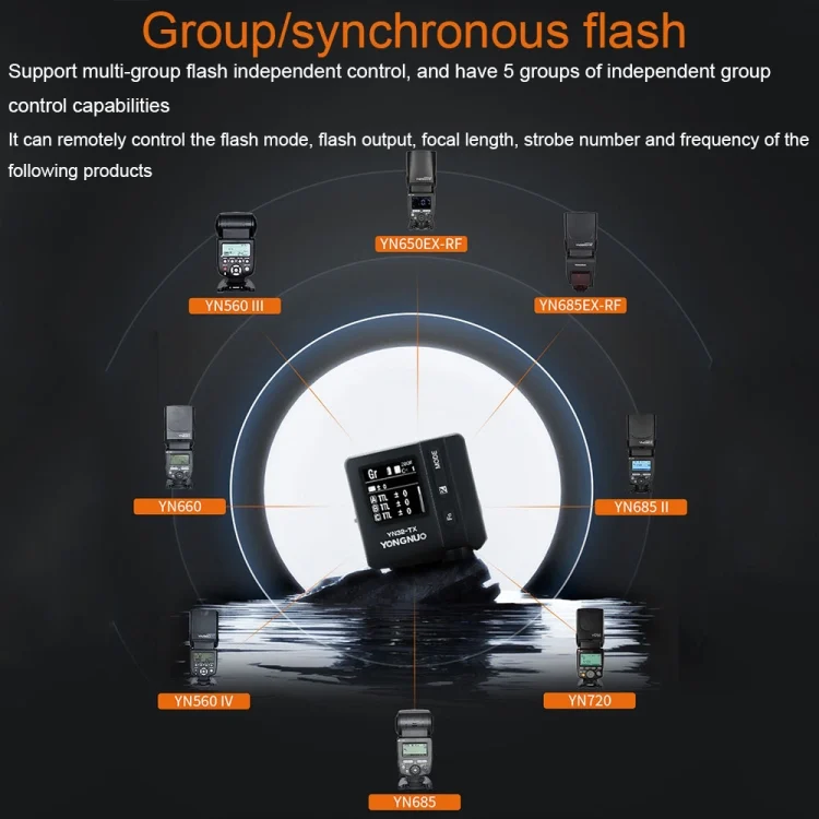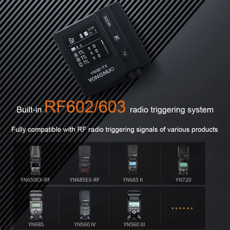 3. Compatible triggering system: Yongnuo RF radio triggering system