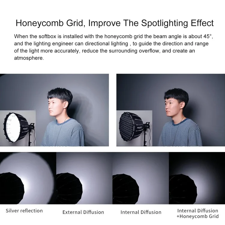 2. Adopts high-reflective coating and soft light material, give a more uniform soft light effect