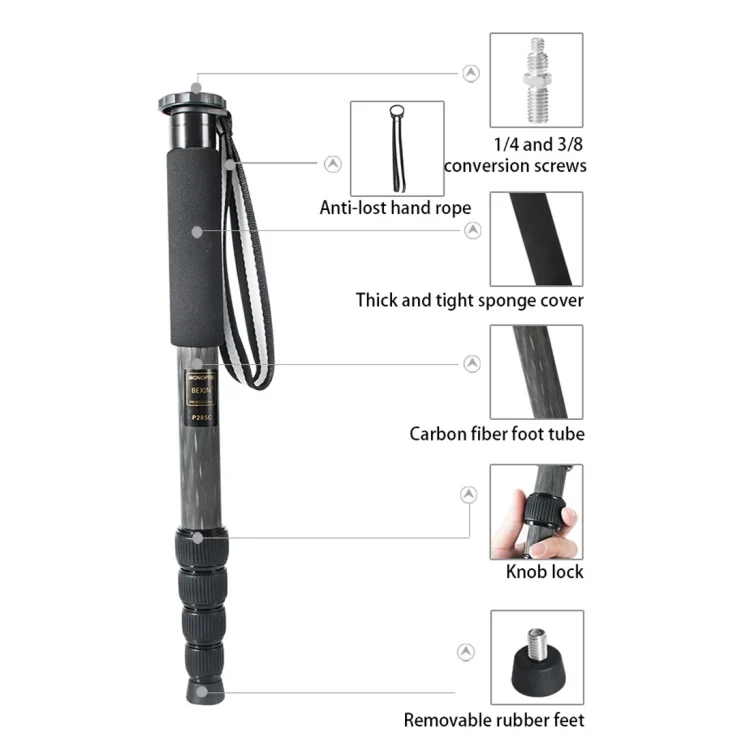 BEXIN P285-C Portable Travel Outdoor DSLR Camera Carbon Fiber Monopod Holder