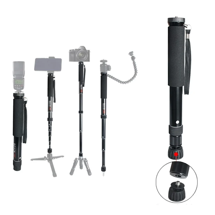 BEXIN P308B Portable Travel Outdoor DSLR Camera Aluminum Alloy Monopod Holder