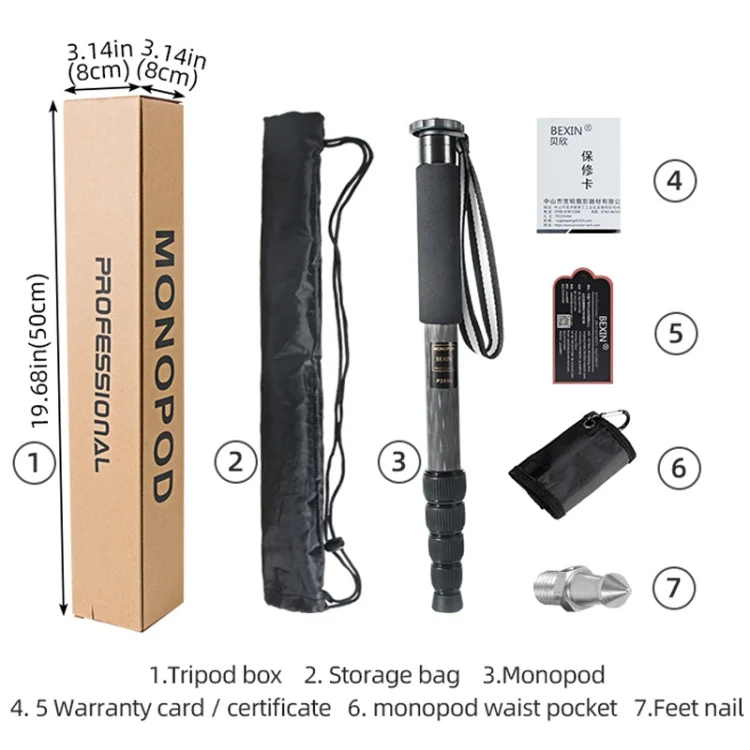 BEXIN P308B Portable Travel Outdoor DSLR Camera Aluminum Alloy Monopod Holder