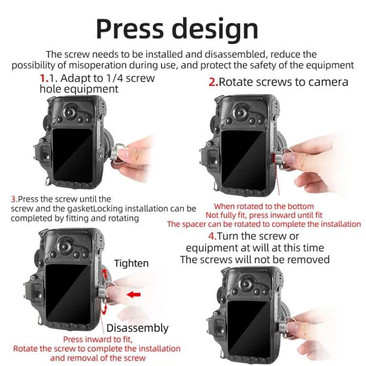 1. Standard 1/4 inch-20 Thread: Compatible with most DSLR cameras, camcorders, tripods, monopods, quick release plates, and camera cages.