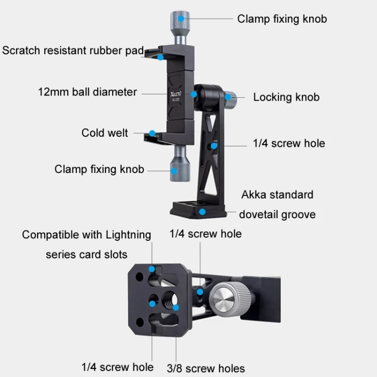 XILETU Metal Swivel Cold Shoe Mobile Phone Clip Photography Fixed Tripod