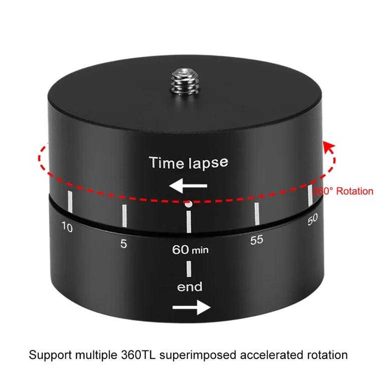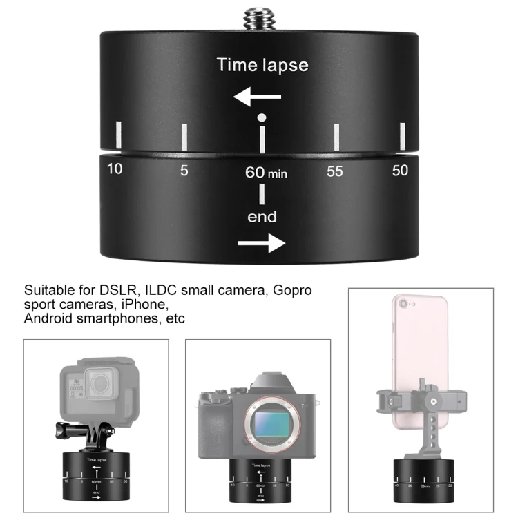 PULUZ 360 Degrees Panning Rotation 60 Minutes Time Lapse Stabilizer Tripod Head Adapter for GoPro HERO12 Black /11 Black /10 Black / 9 Black /8 Black / HERO7 /6 /5 /5 Session /4 Session /4 /3+ /3 /2 /1, Xiaoyi and Other Action Cameras