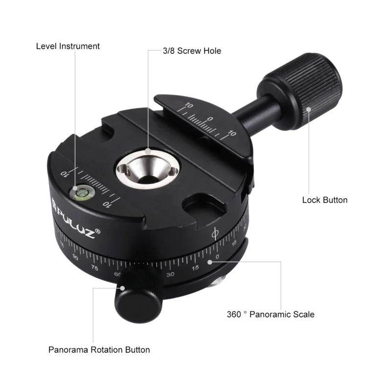PULUZ Aluminum Alloy 360 Degree Rotation Panorama Ball Head with Quick Release Plate for Camera Tripod Head