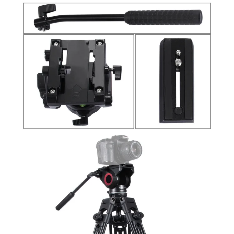 PULUZ Heavy Duty Video Camera Tripod Action Fluid Drag Head with Sliding Plate for DSLR & SLR Cameras, Large Size