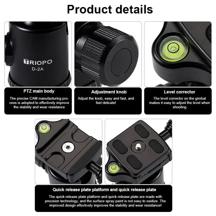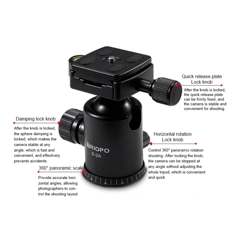 TRIOPO D-2A 360 Degree Rotation Aluminum Alloy Tripod 36mm Ball Head with Quick Release Plate