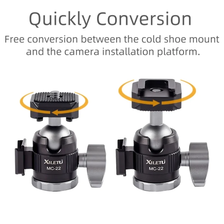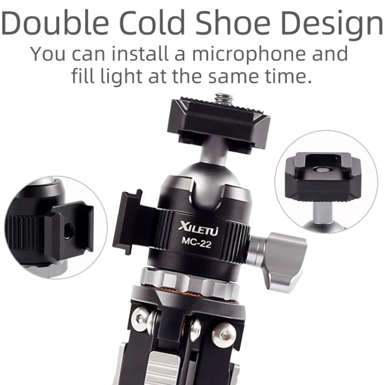 XILETU MC-22 Mini Tripod Ball Head Double Cold Shoe Design With 1/4 Inch Screw