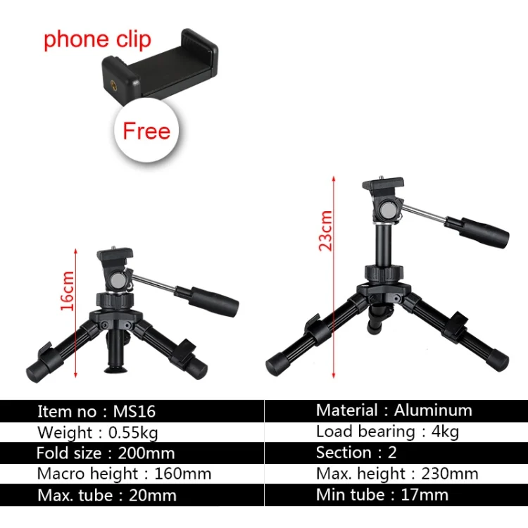 BEXIN MS16 Small Lightweight Tabletop Camera Tripod for Phone Dslr Camera